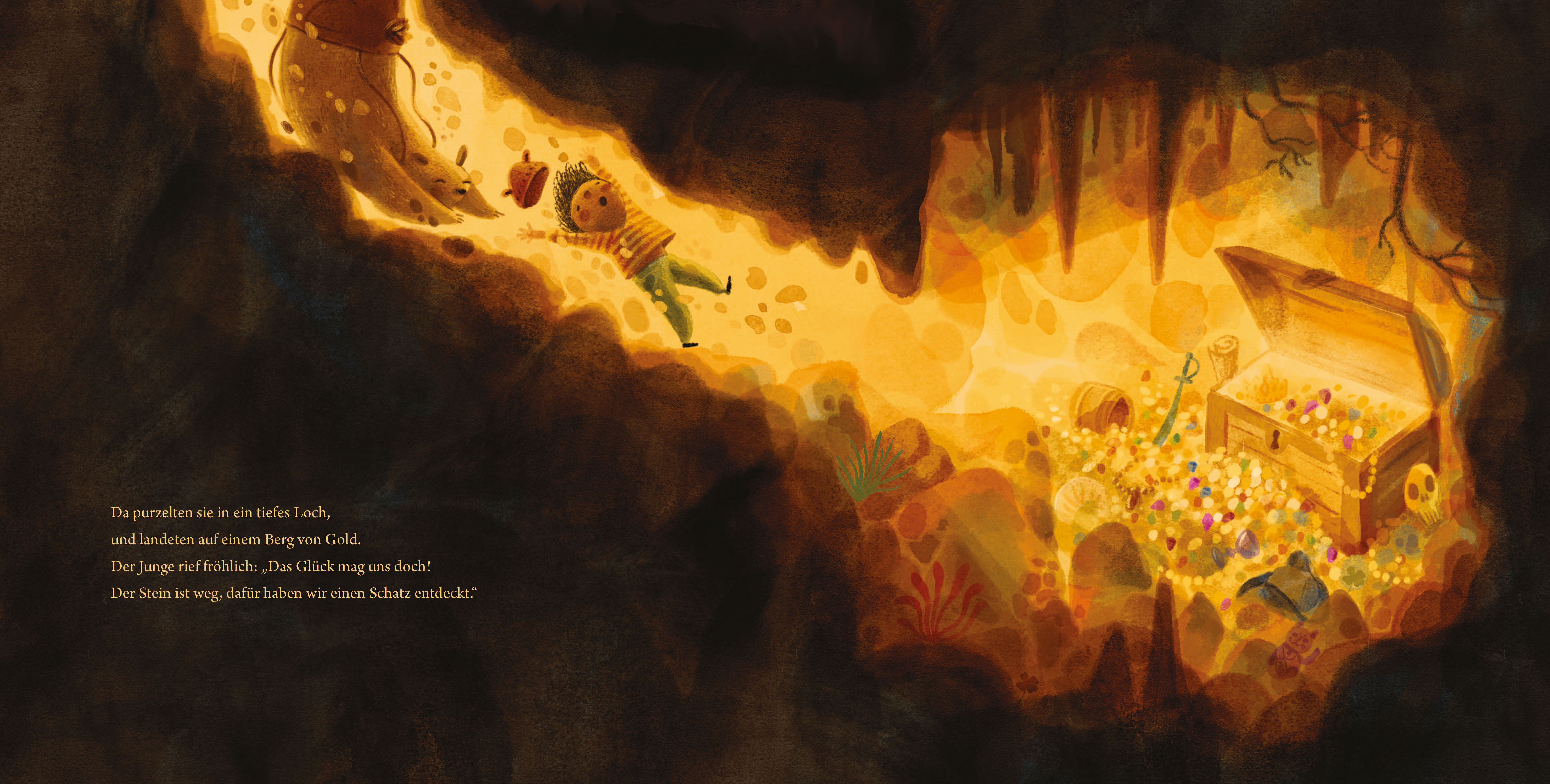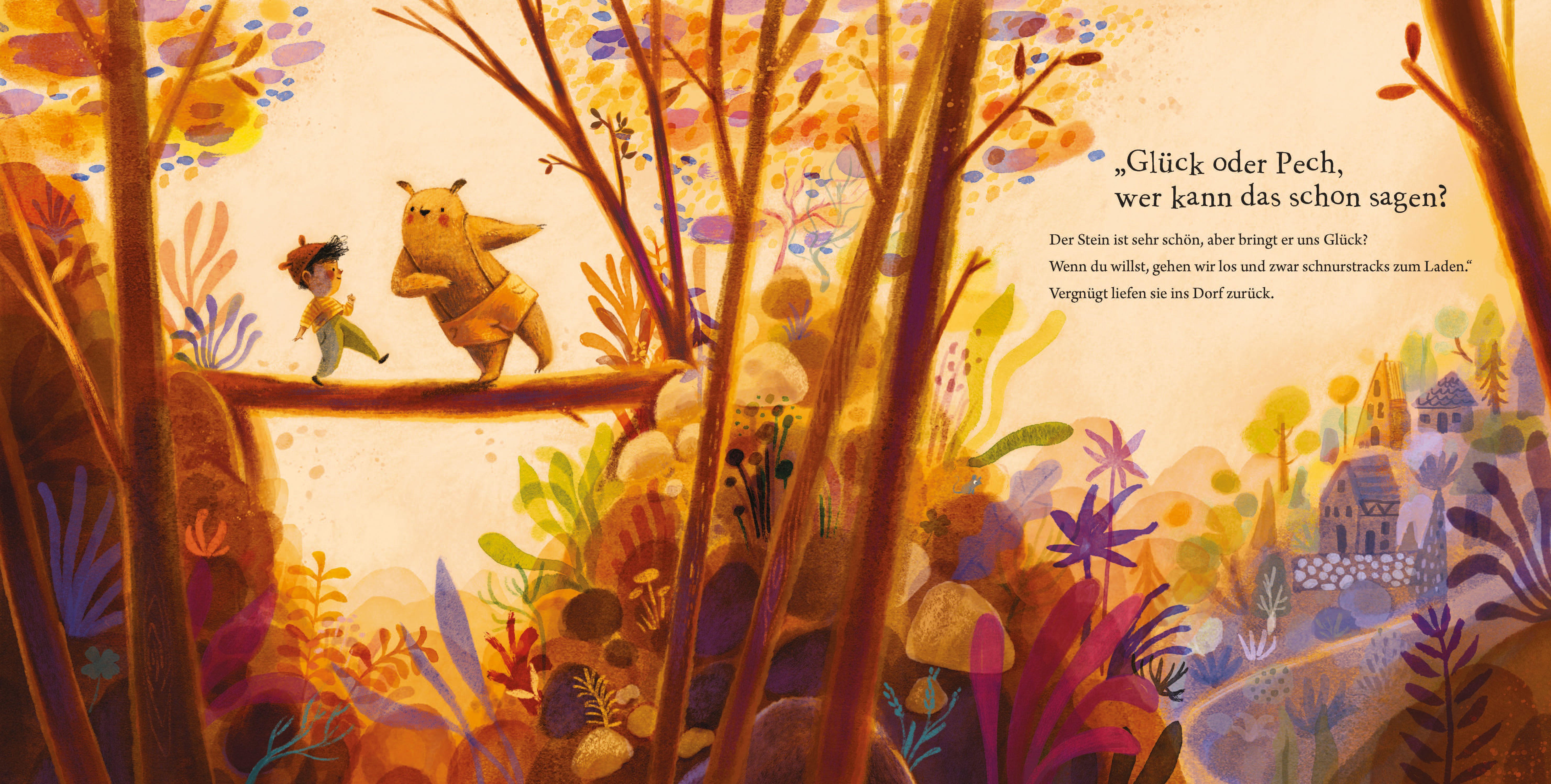 Ein Bär und ein kleiner Junge spielen im Wald. Oh weh! Natürlich muss der Bär ausgerechnet jetzt stürzen! Aber dabei findet er plötzlich einen Diamenten. War das jetzt Pech oder Glück? Ein mitreißendes Kinderbuch über die Frage: Was ist eigentlich wahres Glüc...