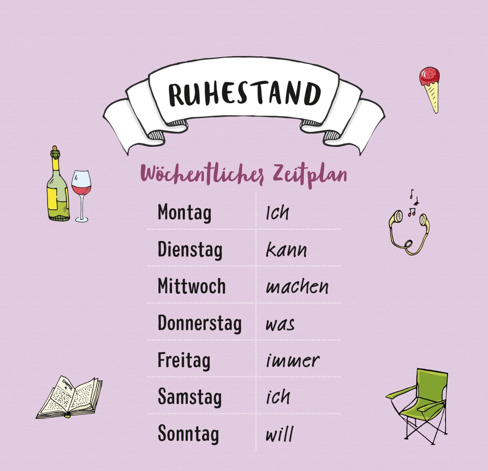 Hurra, Rente! Jetzt beginnt der Freizeitstress! Dieses Aufstellbuch ist das perfekte Geschenk für alle, die sich auf den (Un-)Ruhestand freuen. Amüsante Sprüche und lustige Illustrationen stimmen auf den neuen Lebensabschnitt ein. Ein schönes Abschiedsgeschen...