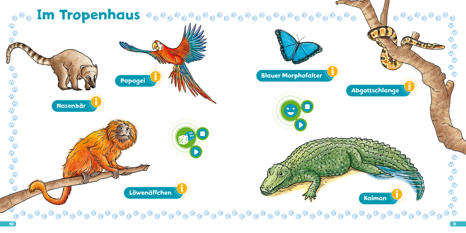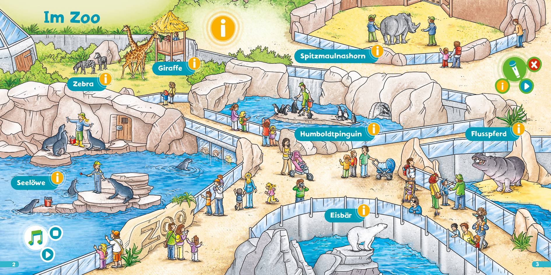 Im Zoo gibt es viel zu entdecken: Seelöwen und Eisbären, Zebras und Giraffen, Nasenbären und Papageien. Durch leichtes Antippen mit dem BOOKii-Hörstift werden die Zootiere lebendig. Tierstimmen und Sounds erklingen, so dass sich die kleinen Tierfreunde wie im ...