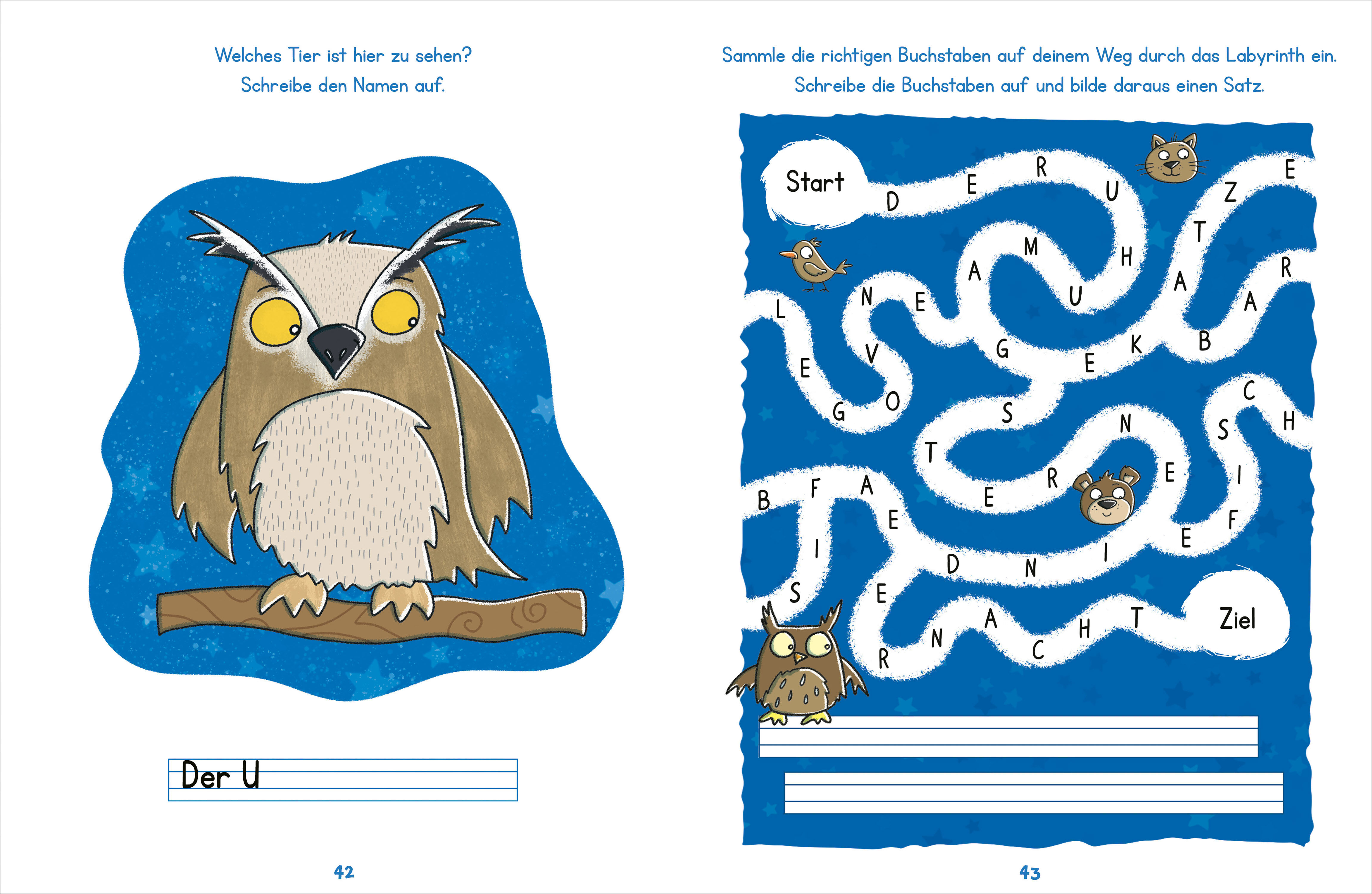 Hilf Huhn Helga, die Satzzeichen richtig zu setzen. Suche im Labyrinth die richtigen Wörter und setze sie zu einem Satz zusammen. Mit diesen und vielen weiteren Aufgaben wird das Alphabet, das Schreiben und Wortarten geübt ganz nebenbei und spielerisch mit Rät...