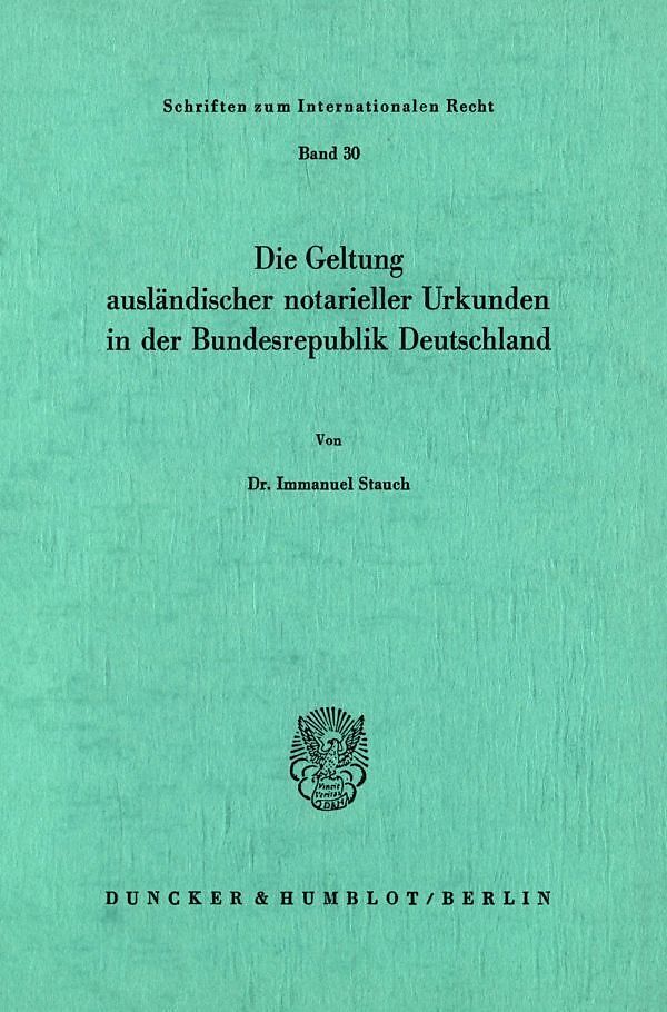 Die Geltung ausländischer notarieller Urkunden in der Bundesrepublik Deutschland.