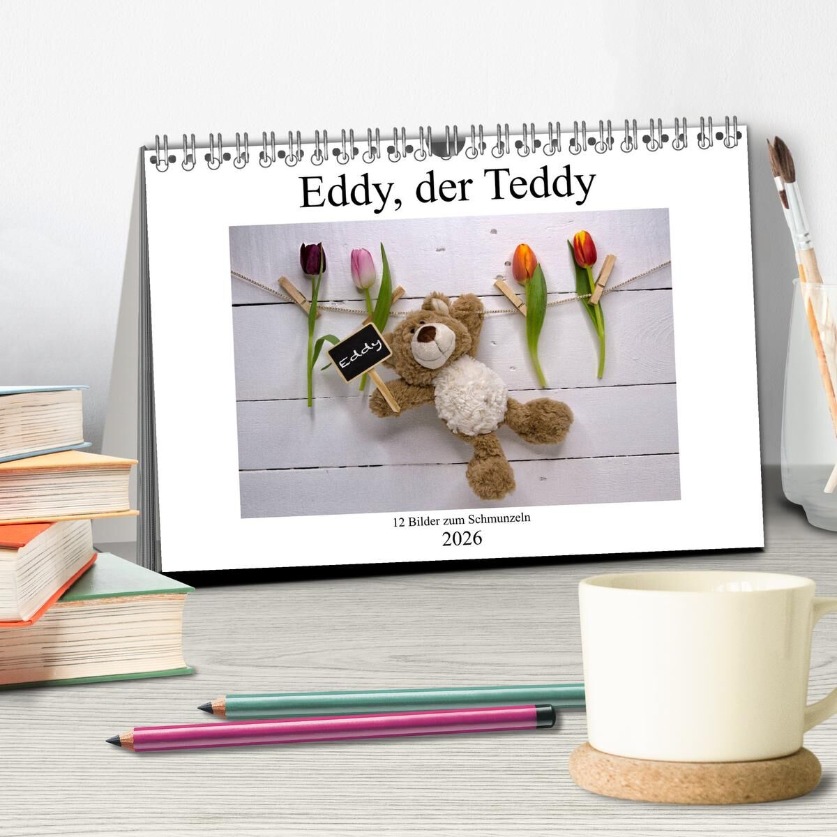 Eddy, der Teddy - 12 Bilder zum Schmunzeln (Tischkalender 2026 DIN A5 quer), CALVENDO Monatskalender