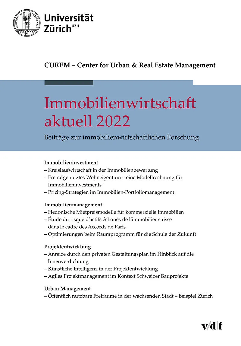 Dieser Band enthält zehn aktuelle Beiträge zur Schweizer Immobilienwirtschaft. Die Arbeiten bieten raschen und einfachen Zugriff auf aktuelle Erkenntnisse aus den Themengebieten "Immobilieninvestment", "Immobilienmanagement", "Projektentwicklung" sowie "Urban ...
