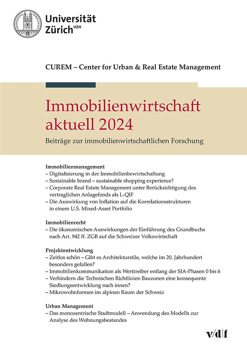 Dieser Band enthält zehn aktuelle Beiträge zur Schweizer Immobilienwirtschaft. Die Arbeiten bieten raschen und einfachen Zugriff auf aktuelle Erkenntnisse aus den Themengebieten «Immobilienmanagement», «Immobilienrecht», «Projektentwicklung» sowie «Urban Manag...