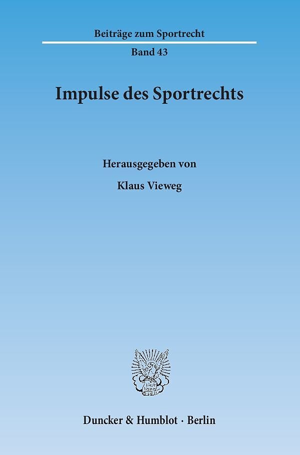 Die Querschnittsmaterie Sportrecht ist seit 2000 Gegenstand der Interuniversitären Tagungen Sportrecht. In diesem siebten Tagungsband sind die anlässlich der Tagungen der Jahre 2012 und 2013 gehaltenen Vorträge enthalten. Der Titel »Impulse des Sportrechts« gr...