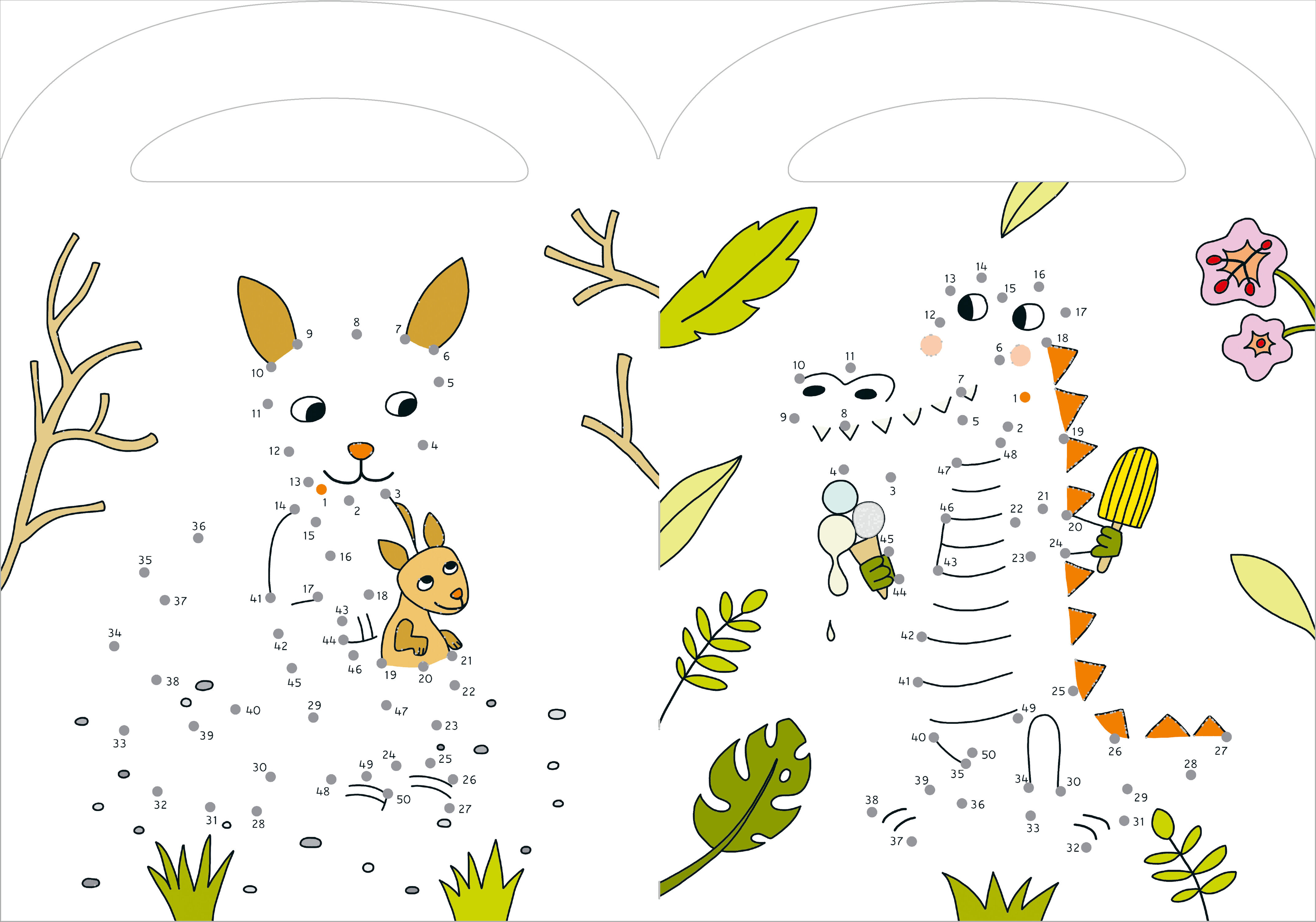 Welches große Tier erschreckt sich vor der kleinen Maus? Wem streckt die kleine Fliege frech die Zunge raus? Noch sind die witzigen Szenen nicht zu erkennen. Mit dem Verbinden der Zahlen von 1 bis 50 zaubert man Punkt für Punkt bunte Motive. Jetzt können die k...
