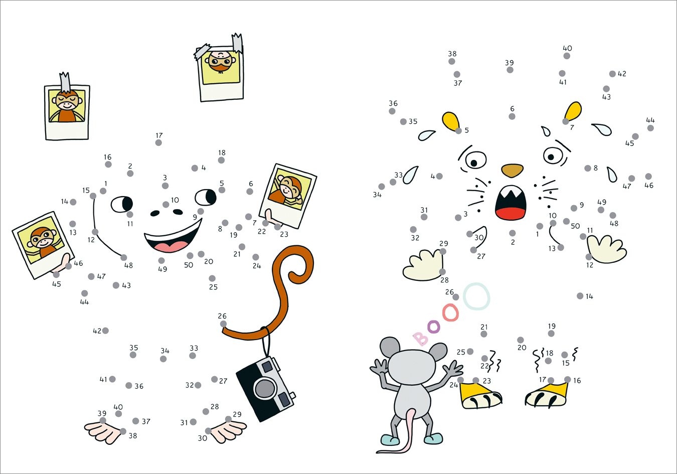 Wen erschreckt die Maus? Wer hält die Eistüte in der Hand? Und welches Tier ist beim Tennis eingeschlafen? Die lustigen colorierten Motive sind noch nicht fertig, aber die Zahlen zeigen den Stiften, wo es langgeht. Einfach die Zahlen verbinden und fertig ist d...
