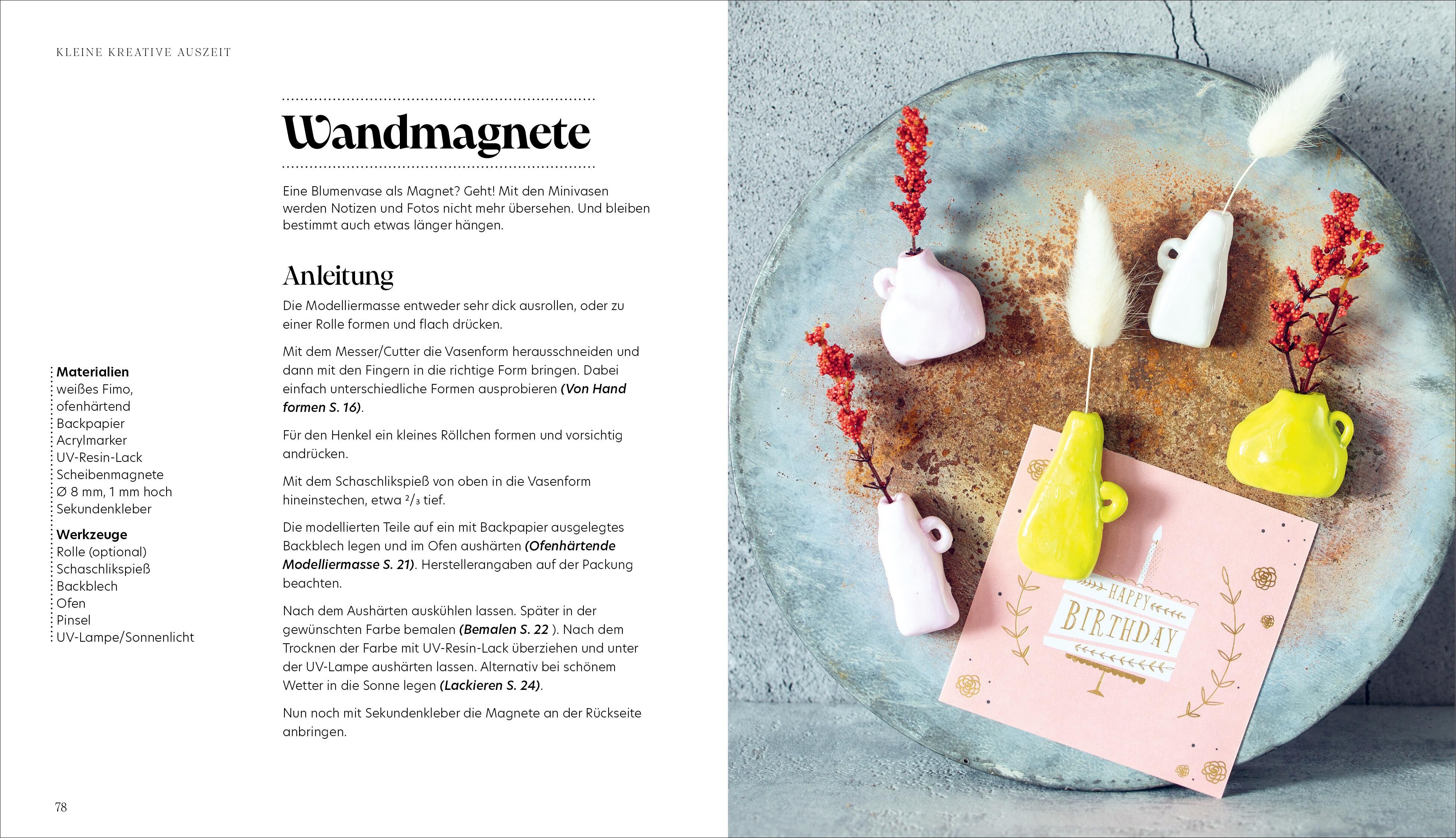 Ein Wochenende, eine neue Technik! Dieses Buch aus der Reihe Kleine kreative Auszeit zeigt, wie mit Modelliermasse wunderschöne Projekte entstehen von Schmuckschälchen über Gartenstecker bis hin zu Serviettenringen. Anschaulich bebildert führt die erfahrene Au...