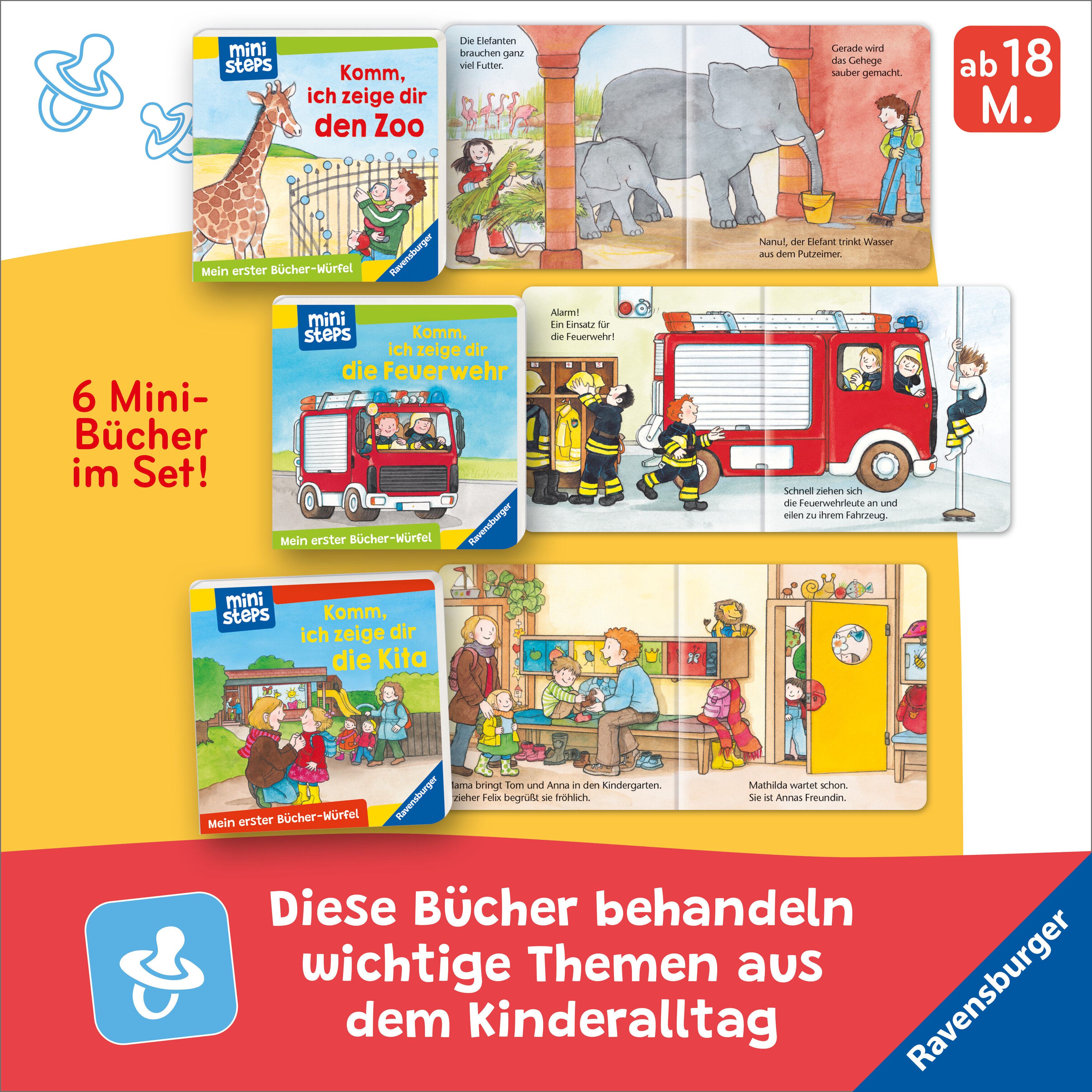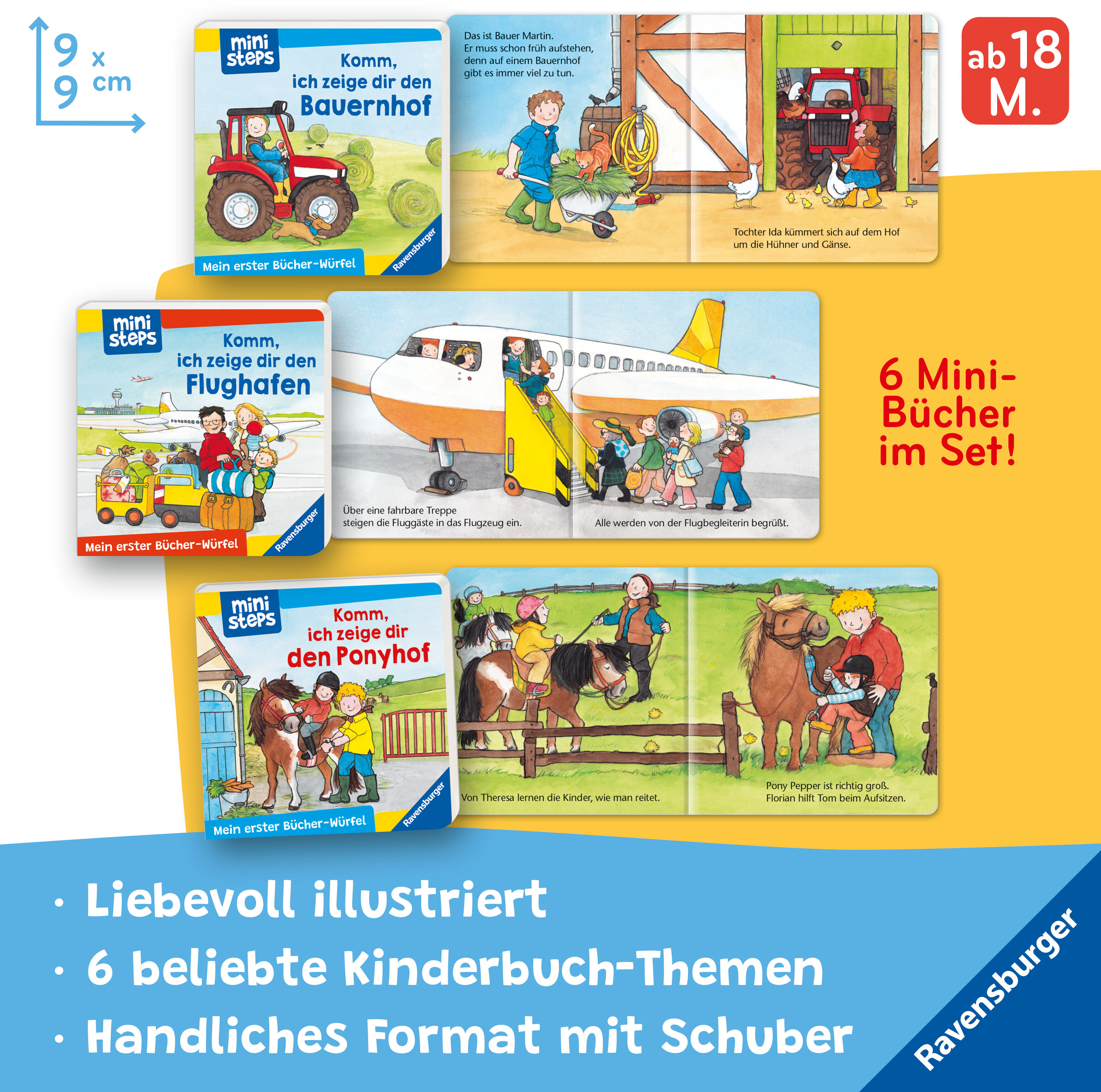 Meine erste kleine Bibliothek Was passiert auf dem Bauernhof, bei der Feuerwehr oder auf dem Flughafen? In diesen sechs Mini-Pappbilderbüchern entdecken Kinder ab 18 Monaten ihre Lieblingsthemen wie Bauernhof, Feuerwehr, Zoo, Kindergarten, Ponyhof und Flughafe...