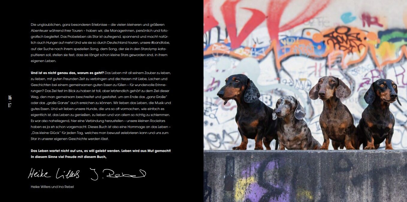 Begleite unsere rockige Dackelband auf ihrer Suche nach Ruhm, Glanz und der großen Bühne und erlebe, wie sich das Glück in den kleinen und großen Momenten des Lebens findet. Jetzt erhältlich zum Mitrocken, Träumen und Genießen! Faszinierende Streetlife Fotos,...Begleite unsere rockige Dackelband auf ihrer Suche nach Ruhm, Glanz und der großen Bühne und erlebe, wie sich das Glück in den kleinen und großen Momenten des Lebens findet. Jetzt erhältlich zum Mitrocken, Träumen und Genießen!