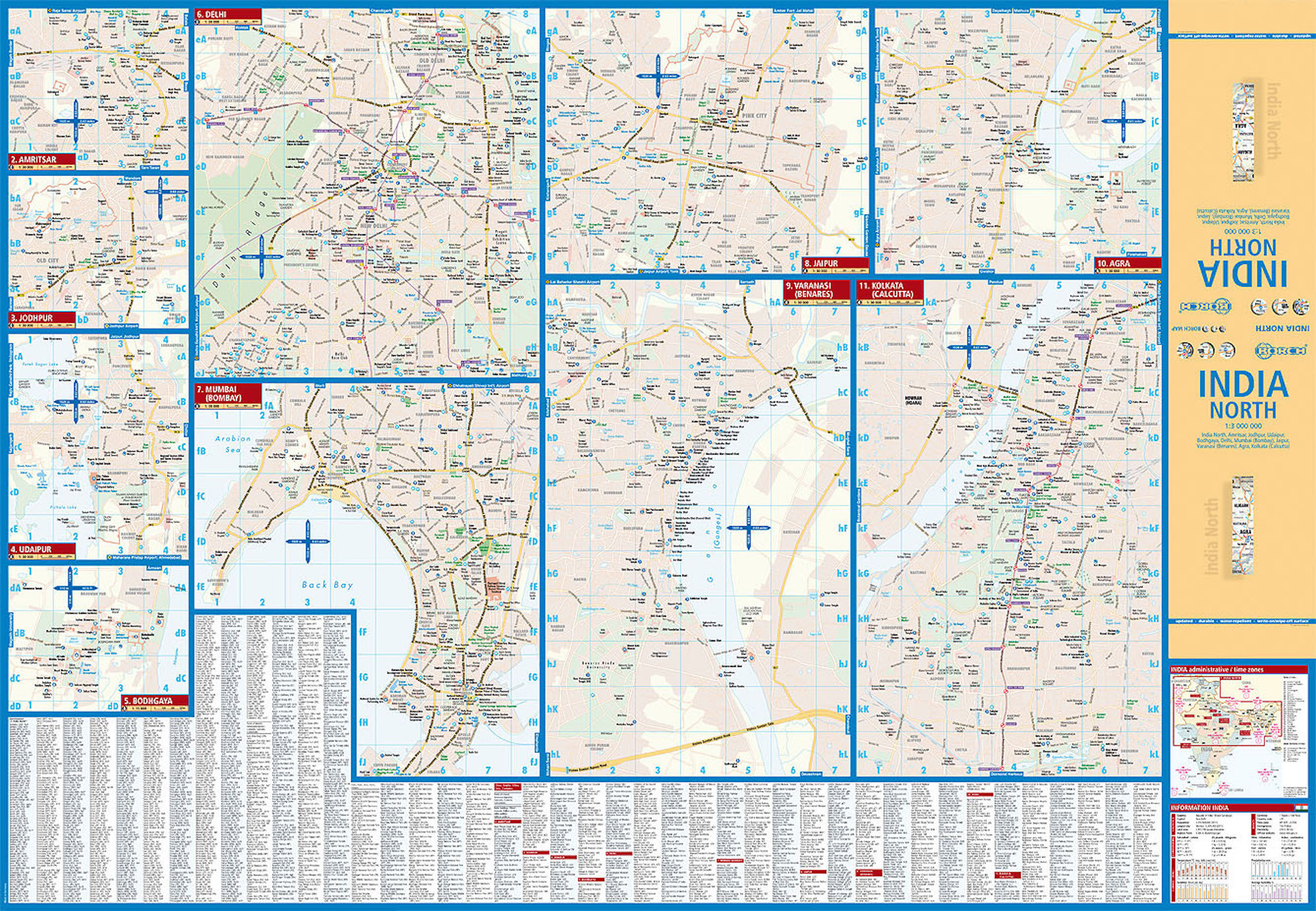 Unsere folienbeschichtete, gefaltete Karte von Indien Nord in der 6. Auflage beinhaltet: Indien Nord 1:3 000 000, Delhi 1:30 000, Mumbai 1:30 000, Kolkata 1:30 000, Jaipur 1:30 000, Agra 1:30 000, Varanasi 1:30 000, Amritsar 1:30 000, Jodhpur 1:30 000, Udaipur...
