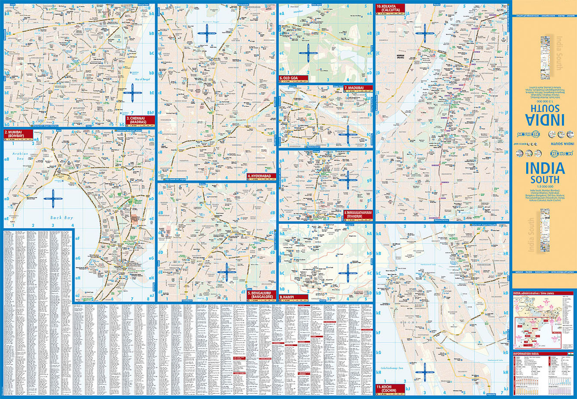 Einzelkarten: India South 1:3 000 000, Mumbai 1:30 000, Kolkata 1:30 000, Chennai 1:30 000, Hyderabad 1:30 000, Bengaluru 1:30 000, Old Goa 1:15 000, Madurai 1:30 000, Trivandrum 1:30 000, Hampi 1:30 000, Kochi 1:30 000, India administrative and time zones For...