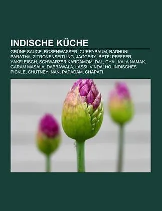 Quelle: Wikipedia. Seiten: 35. Kapitel: Grüne Sauce, Rosenwasser, Currybaum, Radhuni, Paratha, Zitronenseitling, Jaggery, Betelpfeffer, Yakfleisch, Schwarzer Kardamom, Dal, Chai, Kala Namak, Garam masala, Dabbawala, Lassi, Vindalho, Indisches Pickle, Chutney, ...Quelle: Wikipedia. Seiten: 35. Kapitel: Grüne Sauce, Rosenwasser, Currybaum, Radhuni, Paratha, Zitronenseitling, Jaggery, Betelpfeffer, Yakfleisch, Schwarzer Kardamom, Dal, Chai, Kala Namak, Garam masala, Dabbawala, Lassi, Vindalho, Indisches Pickle, Chutney, Nan, Papadam, Chapati, Biryani, Tandur, Ragi Ball, Thali, Chana Masala, Chat Masala, Panir, Dosa, Pakora, Mukhwas, Samosa, Raita, Puri, Charoli, Bhatura, Gulab Jamun, Sambar, Bhajji, Bari, Laddu, Panch Phoron, Alu gobhi, Idli, Tanduri Masala, Dal Bhat. Auszug: Die indische Küche umfasst viele verschiedene regionale Gerichte und Kochstile, die vom Himalaya bis zur Südspitze Indiens reichen und so verschieden sind, dass eine Zusammenfassung unter einem Begriff problematisch ist. Als Inbegriff indischer Küche gilt in der westlichen Welt die Vielfalt der Gewürze und das Verwenden von scharfen Soßen. Die Vielfältigkeit der indischen Küche spiegelt nicht nur die enorme Größe des Landes, sondern auch dessen Religions- und Kulturgeschichte wieder. So findet man in der indischen Küche viele Elemente der orientalischen Küche (zum Beispiel Pilaw), aber auch westliche Einflüsse der ehemaligen Kolonialmächte (z. B. Tomaten, Kartoffeln und Chili). Vegetarismus spielt in der Indischen Küche eine bedeutende Rolle. So essen viele Hindus überwiegend oder ausschließlich vegetarisch, der Verzicht auf Fleisch ist allerdings kein Dogma. Tabu ist im Hinduismus jedoch der Verzehr von Rindfleisch, da im Hinduismus der Kuh eine besondere Bedeutung zukommt. In den muslimischen Bevölkerungsteilen betrifft dieses Tabu den Verzehr von Schweinefleisch. Angehörige der untersten Schicht der Kastenordnung sind von diesen religiös begründeten Restriktionen weniger betroffen, doch leben viele in Armut und essen das, was sie sich leisten können. Ein Faktor, der den geringen Fleischkonsum zusätzlich begründet. Streng vegetarisch leben in Indien etwa nur 20 % der Bevölkerung, etwa 30 % gelten als regelmäßige Fleischesser. Für den Großteil der Inder stellt Fleisch jedoch generell eine untergeordnete Rolle auf dem täglichen Speiseplan dar und ist von der Menge her häufig nur eine kleine Beilage. Als Eiweißlieferanten dienen in der indischen Küche hauptsächlich Milchprodukte und Hülsenfrüchte. Abgesehen von rein vegetarischer Ernährung ist Hühnerfleisch über alle Kasten- und Religionsgrenzen hinweg beliebt (das Huhn wurde ursprünglich in diesem Teil der Welt domestiziert). Charakteristisch für die Küche des gesamten Subkontinents sind Gerichte, die sich durch ein