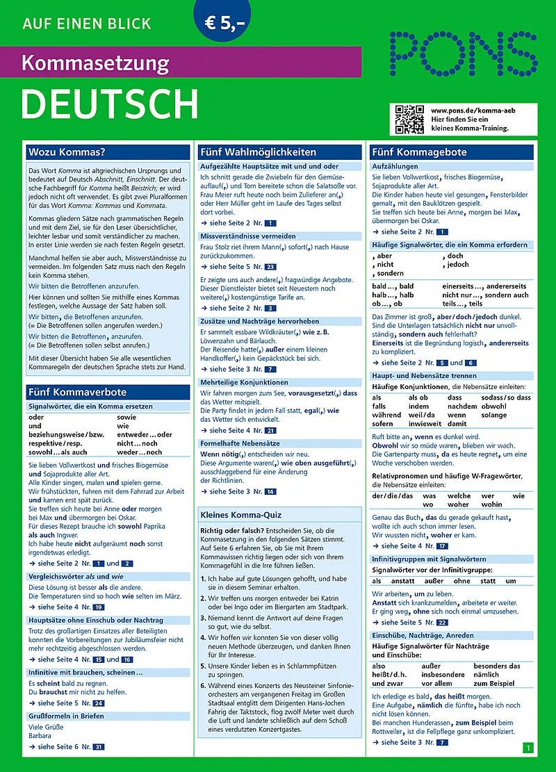 Endlich Sicherheit: Alle deutschen Kommaregeln auf einen Blick Alle Regeln, leicht verständliche Erklärungen, Tipps und aussagekräftige Beispielsätze. Online-Extra: Kleines Kommatraining zum Herunterladen und Ausdrucken. Immer griffbereit zum Nachschlagen. Au...