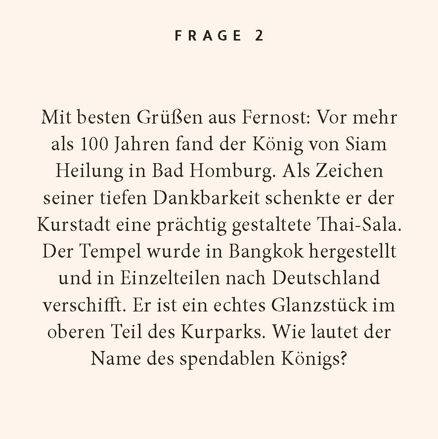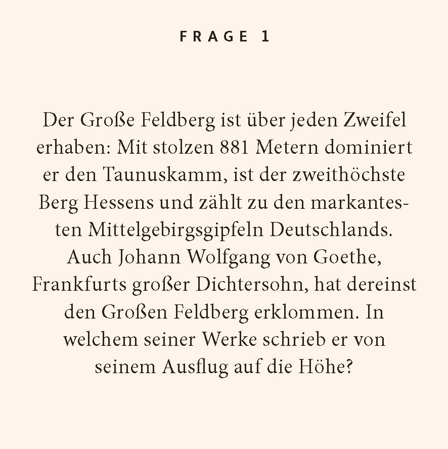 Römer und Räuber, Kobolde und Künstler, Heilwasser und Prickelbrause eine einzigartige Mischung, die es so nur im Taunus gibt! Von der Höhe auf dem Großen Feldberg aus geht es in 100 Fragen und Antworten auf einen rasanten Streifzug durch Stadt, Land, Fluss, B...