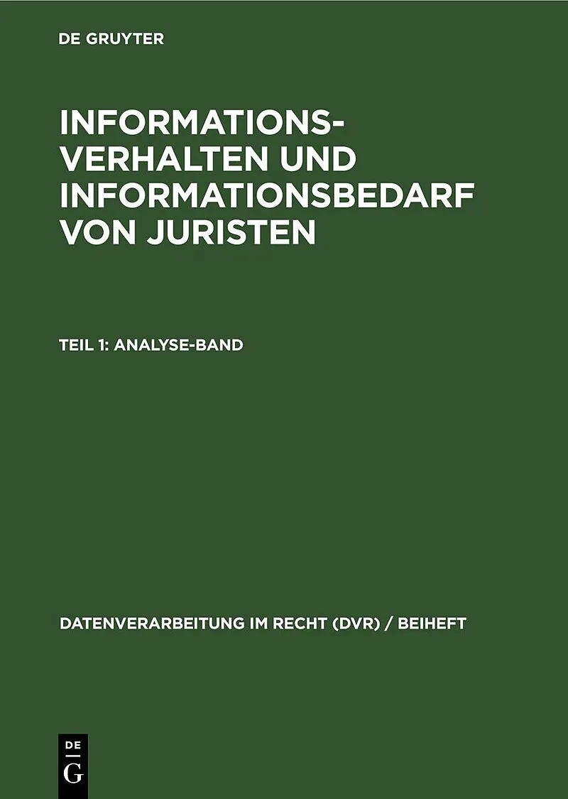 Keine ausführliche Beschreibung für "Informationsverhalten und Informationsbedarf von Juristen, Teil 1: Analyse-Band" verfügbar. Frontmatter -- Vorwort -- Inhaltsverzeichnis -- 0. Vorbemerkung -- 1. Zum aktuellen beruflichen Informationsverhalten der...