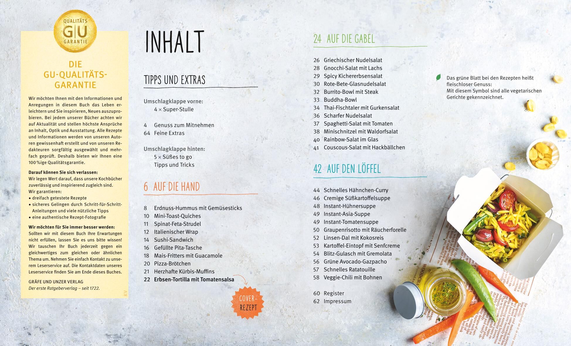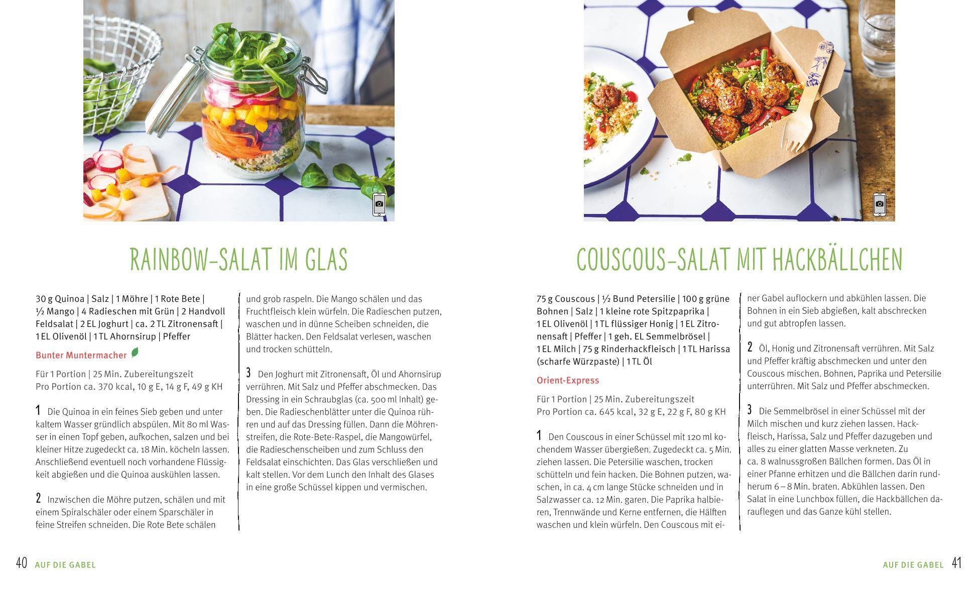 Voll im Trend: Lunchbox-Rezepte für eine genussvolle Mittagspause So könnte sie aussehen, die Speisekarte der Lunchbox: Wrap mit italienischem Hähnchen-Salat, Mais-Fritters mit Guacamole, Mini-Quiches, Sandwich mit Räucherlachs und Avocado-Wasabi-Creme, Gnocch...