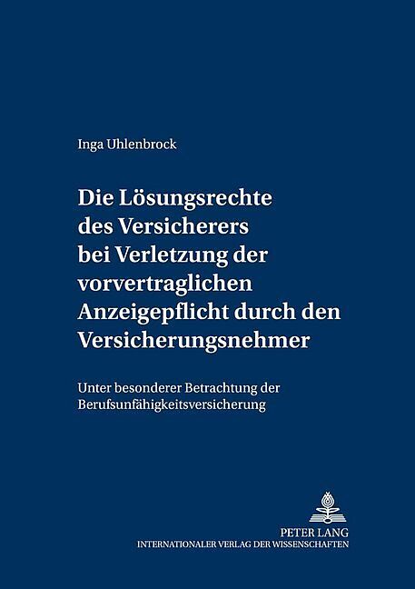 Die Lösungsrechte des Versicherers im Falle einer vorvertraglichen Anzeigepflichtverletzung durch den Versicherungsnehmer sind im Versicherungsrecht von zentraler Bedeutung, weil von ihrer Ausübung der Bestand des Versicherungsschutzes abhängt. Insbesondere au...