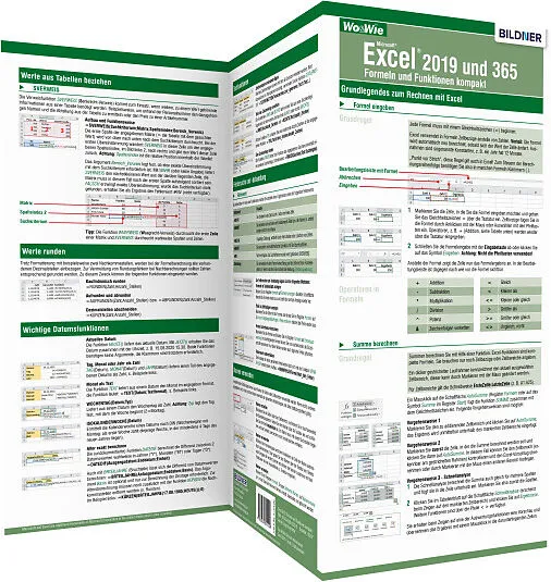 Diese Wo&Wie Schnellübersicht Microsoft Excel Formeln und Funktionen kompakt für alle Versionen behandelt die wichtigsten Themen , die Sie in Microsoft Excel benötigen. Die Faltkarte beinhaltet u. a. Anleitungen zu diesen Bereichen: Grundlegendes zum Rech...