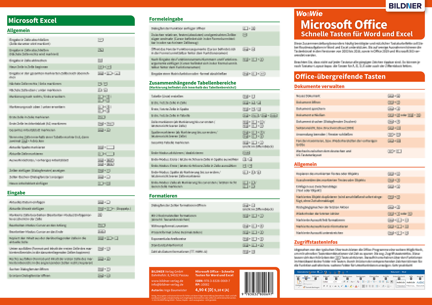 Microsoft-Office Schnelle Tasten für Word & Excel: Aktualisierte Auflage für die Versionen Microsoft 365 und Office 2021 + 2019 + 2016 In dieser Faltkarte finden Sie alle wichtigen und häufig benötigten Tastaturbefehle für die Microsoft Office-Programme W...