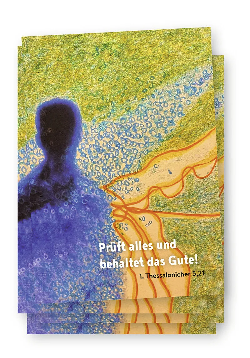 Dieses Postkartenset (10 Karten im Format DIN A6) mit der Jahreslosung aus 1. Thessalonicher 5,21 und dem Bild der Wuppertaler Künstlerin Inge Heinicke-Baldauf ist passend gestaltet zur Bildmeditation aus dem Buch "Prüft alles und behaltet das Gute!" von Marti...