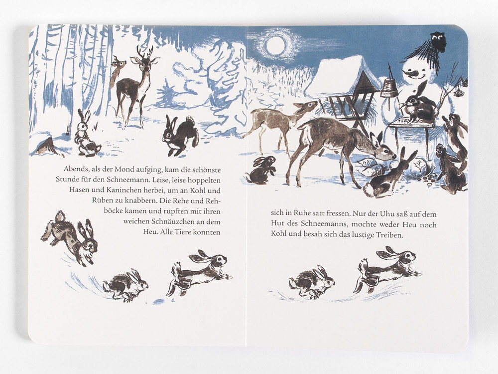 Es hat geschneit! Karl, Katrinchen und Spatz bauen einen Schneemann mit einer Mohrrübe als Nase. Doch am nächsten Tag ist sie verschwunden ... Geheimnisvolle Spuren im Schnee verraten den Geschwistern, dass die hungrigen Tiere des Waldes die Nase stibitzt habe...