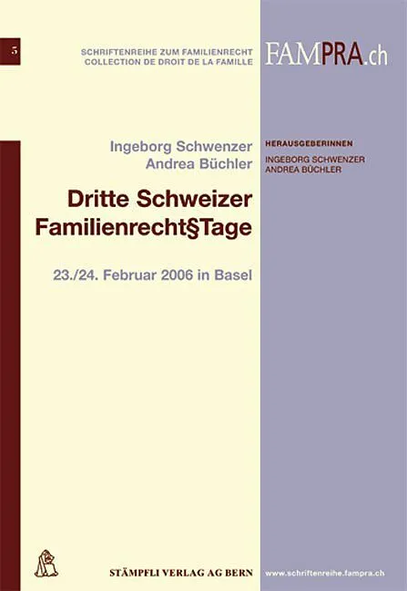 Am 23. und 24. Februar 2006 fanden in Basel die nunmehr bereits Dritten Schweizer Familienrecht§Tage statt. Die vorliegende Publikation enthält die drei Plenumsreferate sowie Unterlagen, Materialien und Ergebnisse der insgesamt zehn Arbeitskreise. Entsprechend...