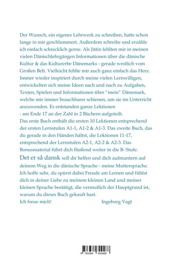 Hej! Du hast dich, nach Det er så dansk (Lektion 1-10) dafür entschieden, Dänisch weiter zu lernen. Gut so. Dennoch, wie du vermutlich schon erfahren hast, erfordert eine neue Sprache zu lernen Zeit, Fleiß, ein gutes Gehör und viel Geduld. Dein Ohr braucht Zei...