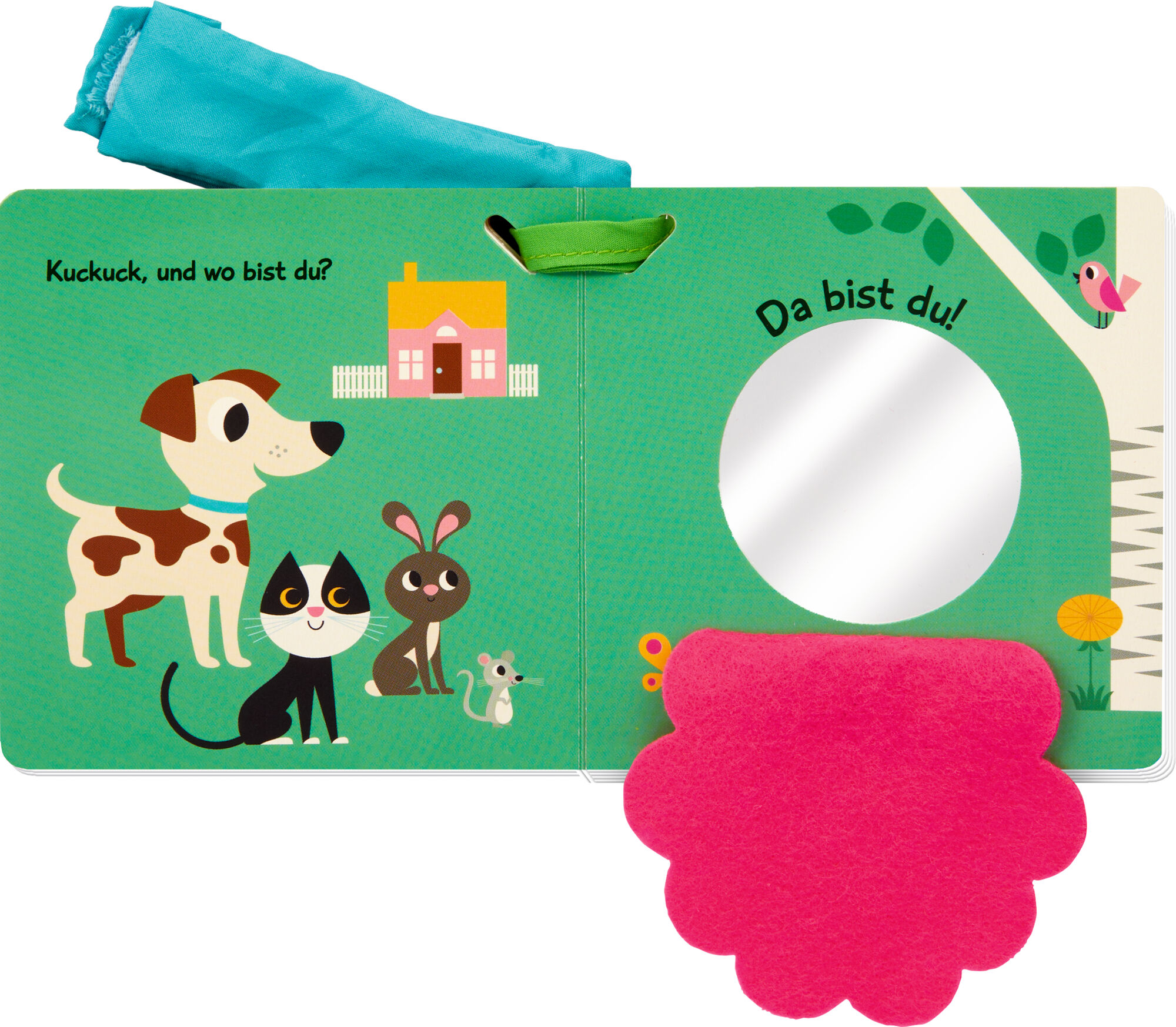 Große Fühlklappen und ein Spiegel auf der letzten Seite laden kleine Entdecker zum Suchen und Spielen ein.