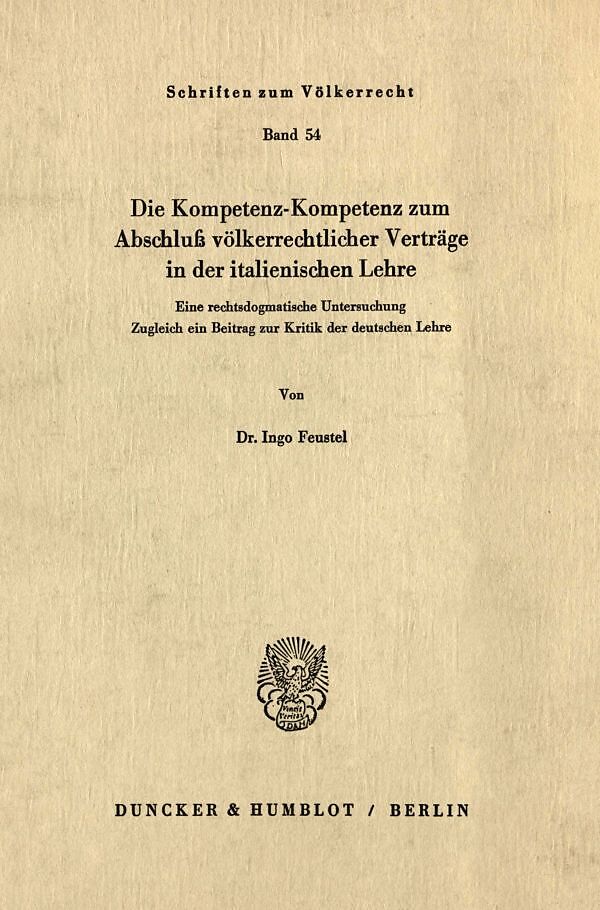 Die Kompetenz-Kompetenz zum Abschluß völkerrechtlicher Verträge in der italienischen Lehre.