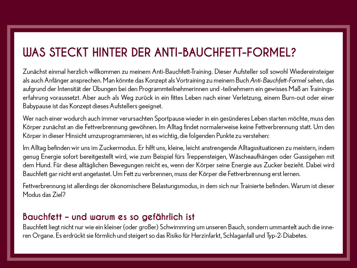 Bauchfett weg für Einsteiger Egal, ob du Anfänger, körperlich eingeschränkt, untrainiert oder Wiedereinsteiger bist: Diese Challenge ist genau für dich gemacht! Mit seinem erfolgreichen Buch Anti-Bauchfett-Formel hat Fitnessexperte Prof. Dr. Ingo Froböse berei...