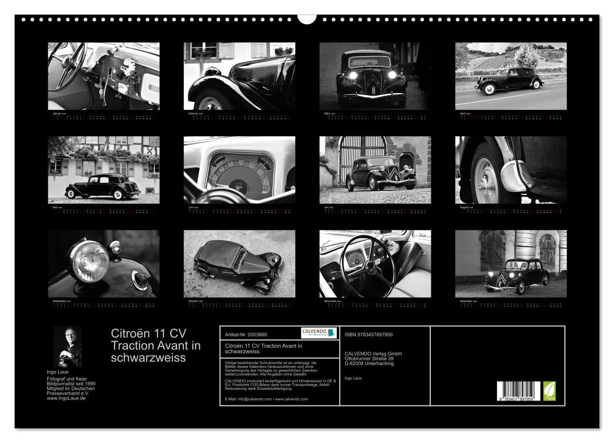 Citroën 11 CV Traction Avant in schwarzweiss (Wandkalender 2026 DIN A2 quer), CALVENDO Monatskalender