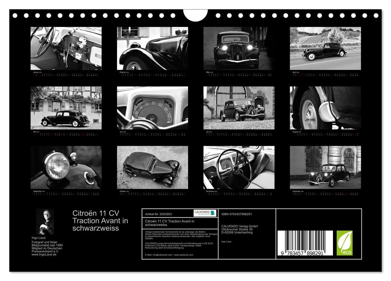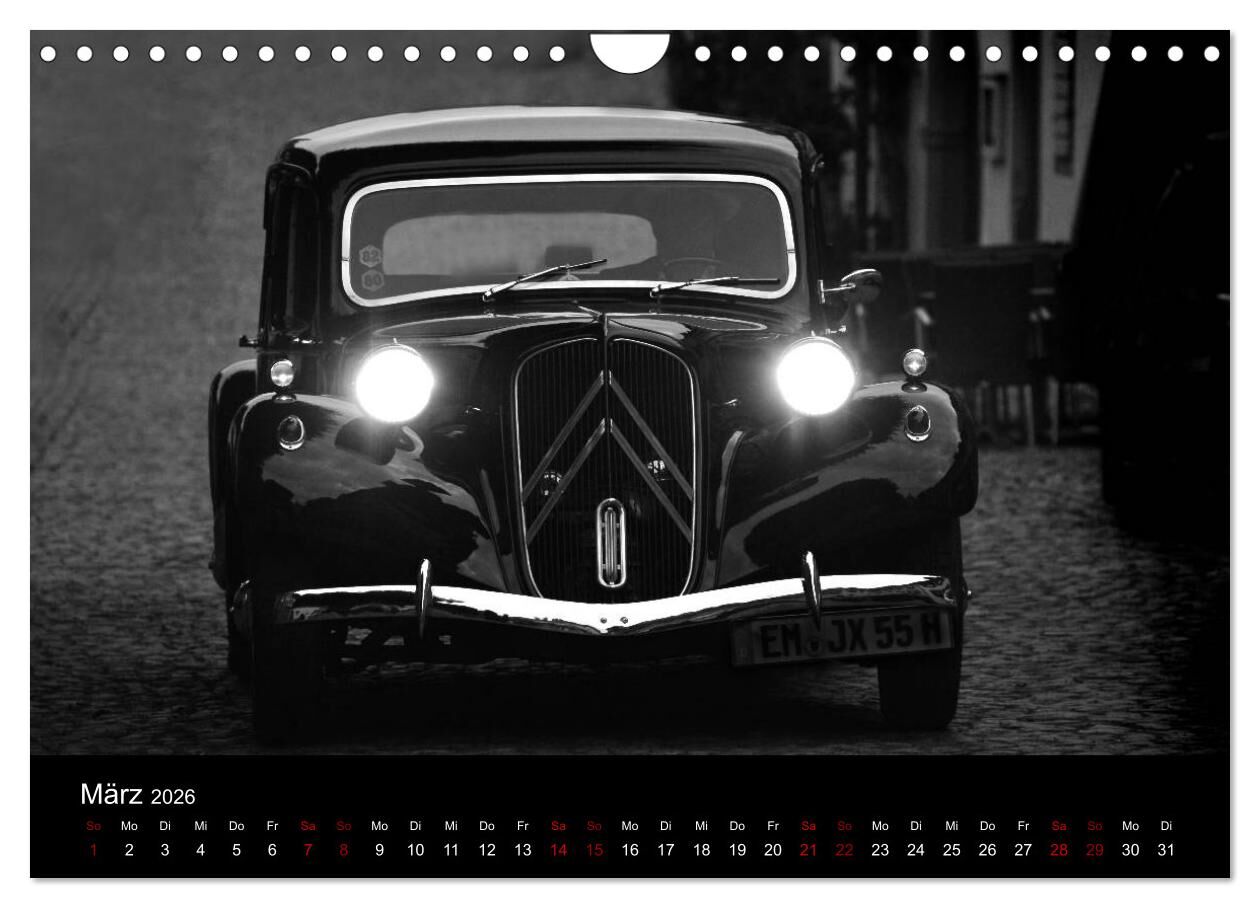 Citroën 11 CV Traction Avant in schwarzweiss (Wandkalender 2026 DIN A4 quer), CALVENDO Monatskalender