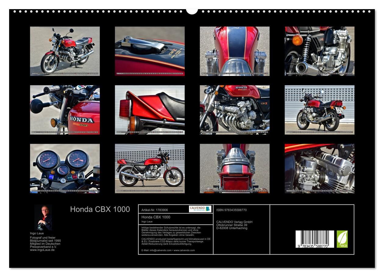Seit 1979 ist diese schöne Honda CBX 1000 CB 1 in erster und wohlbehüteter Hand. Der Fotograf Ingo Laue, konnte die Highlights dieses Prachtmotorrads ablichten. Ein dekorativer Kalender für jeden Biker.
