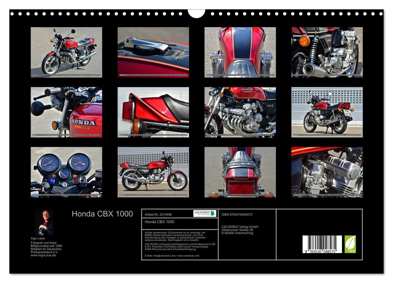 Seit 1979 ist diese schöne Honda CBX 1000 CB 1 in erster und wohlbehüteter Hand. Der Fotograf Ingo Laue, konnte die Highlights dieses Prachtmotorrads ablichten. Ein dekorativer Kalender für jeden Biker.