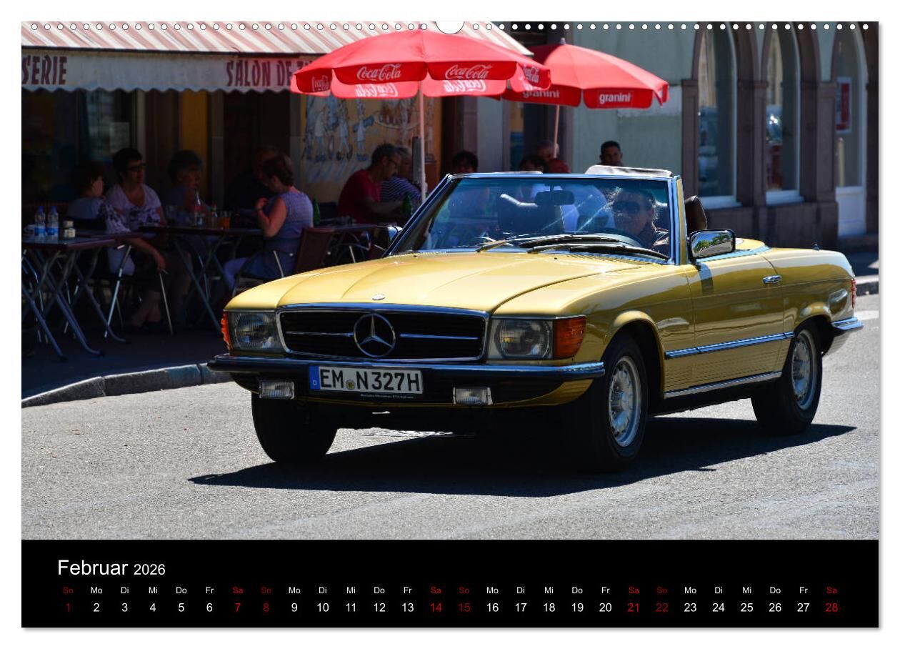Mercedes SL W107 - zeitlose Eleganz (hochwertiger Premium Wandkalender 2026 DIN A2 quer), Kunstdruck in Hochglanz