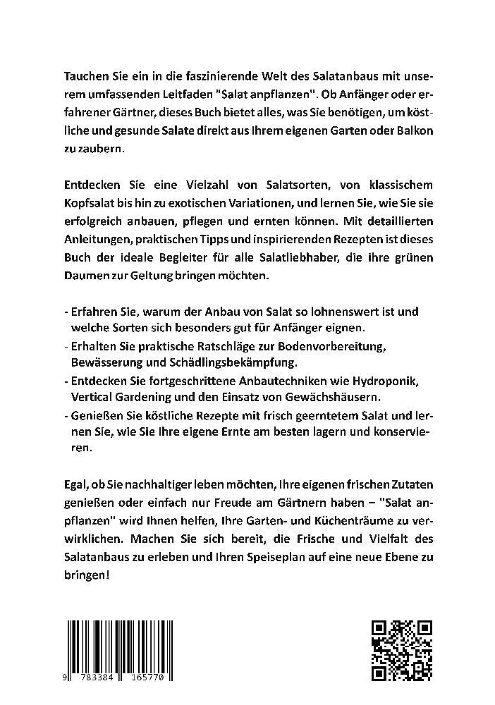 Tauchen Sie ein in die faszinierende Welt des Salatanbaus mit unserem umfassenden Leitfaden "Salat anpflanzen". Ob Anfänger oder erfahrener Gärtner, dieses Buch bietet alles, was Sie benötigen, um köstliche und gesunde Salate direkt aus Ihrem eigenen...