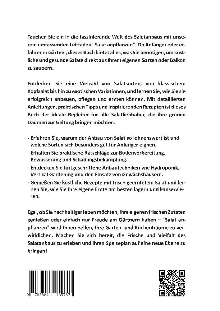 Tauchen Sie ein in die faszinierende Welt des Salatanbaus mit unserem umfassenden Leitfaden "Salat anpflanzen". Ob Anfänger oder erfahrener Gärtner, dieses Buch bietet alles, was Sie benötigen, um köstliche und gesunde Salate direkt aus Ihrem eigenen Garten od...