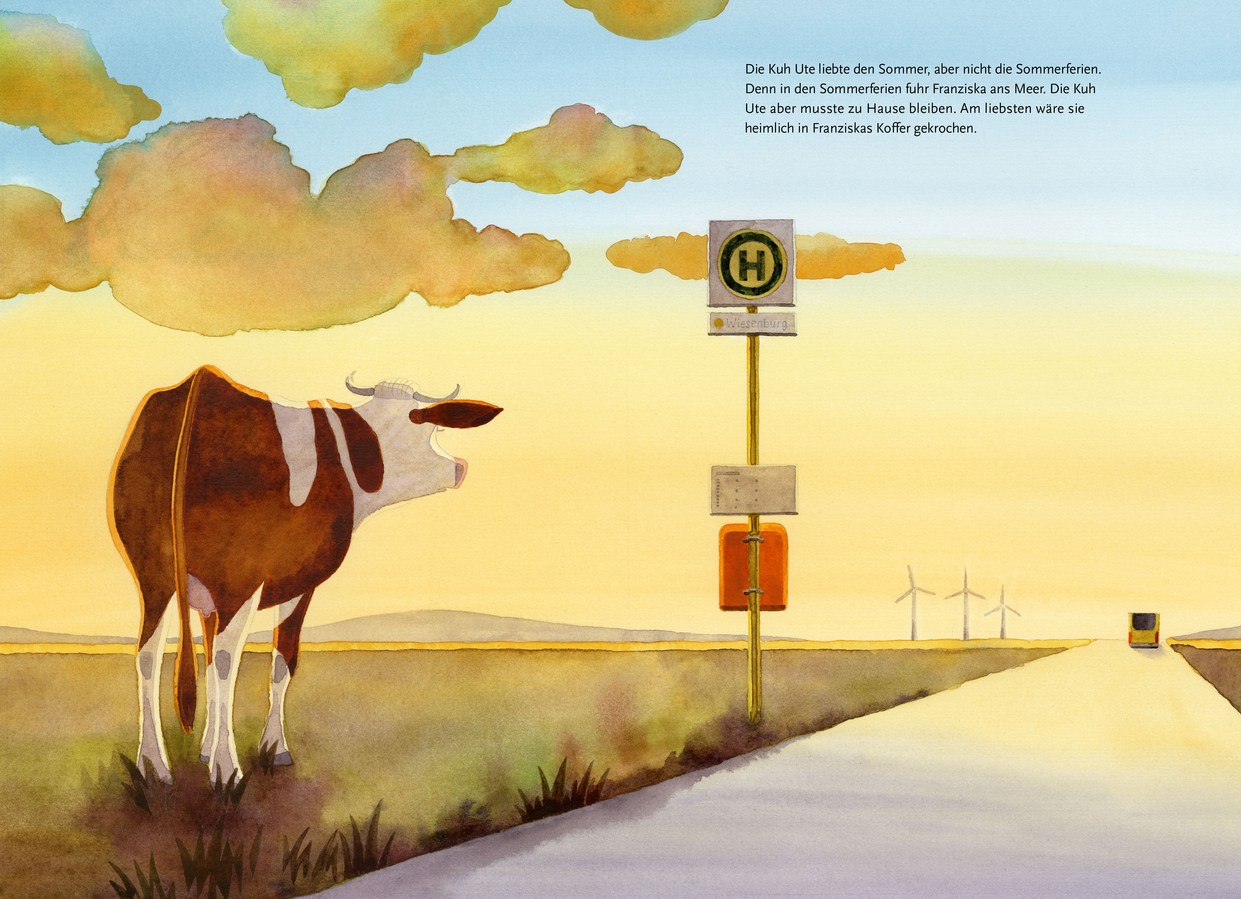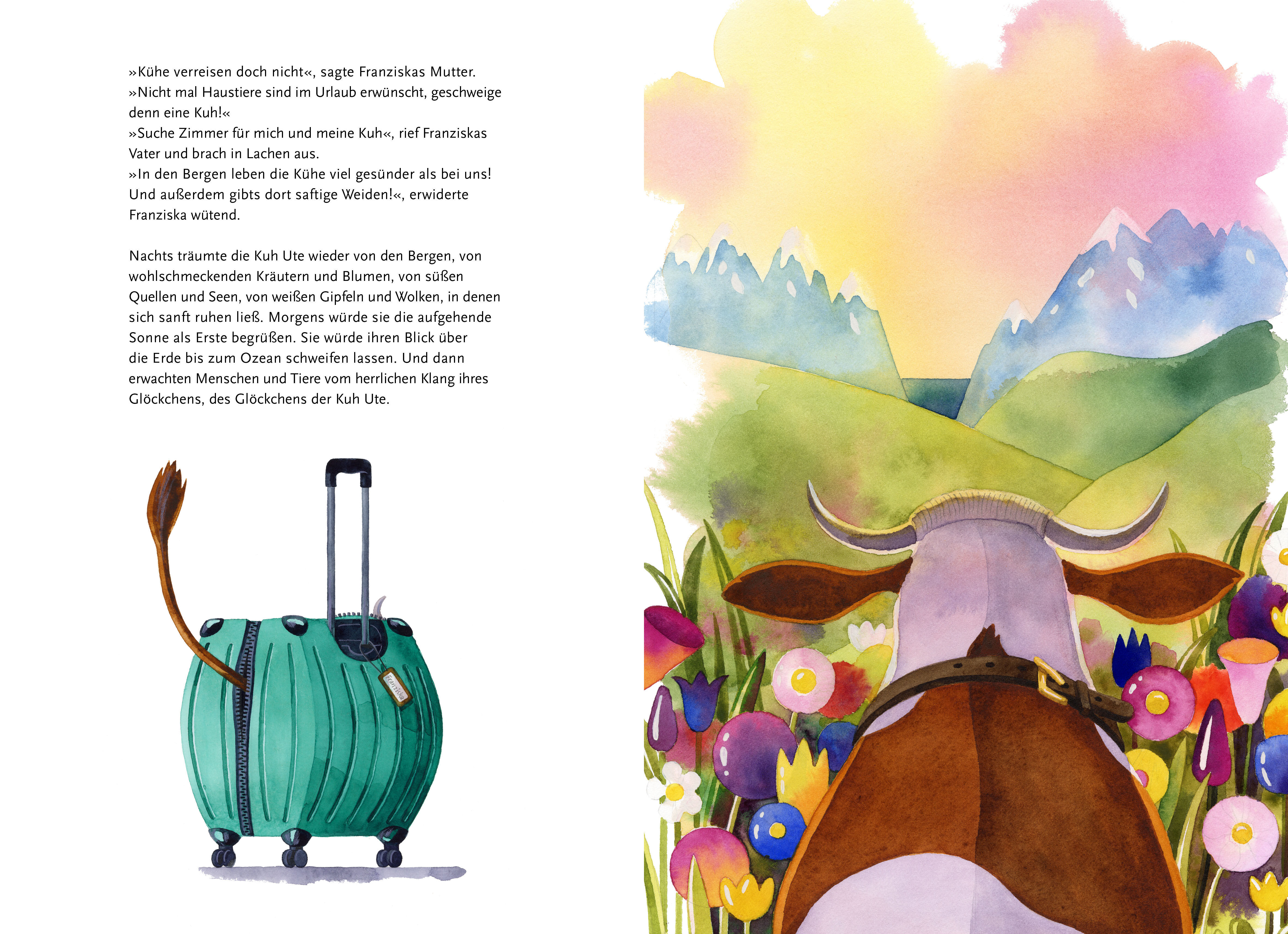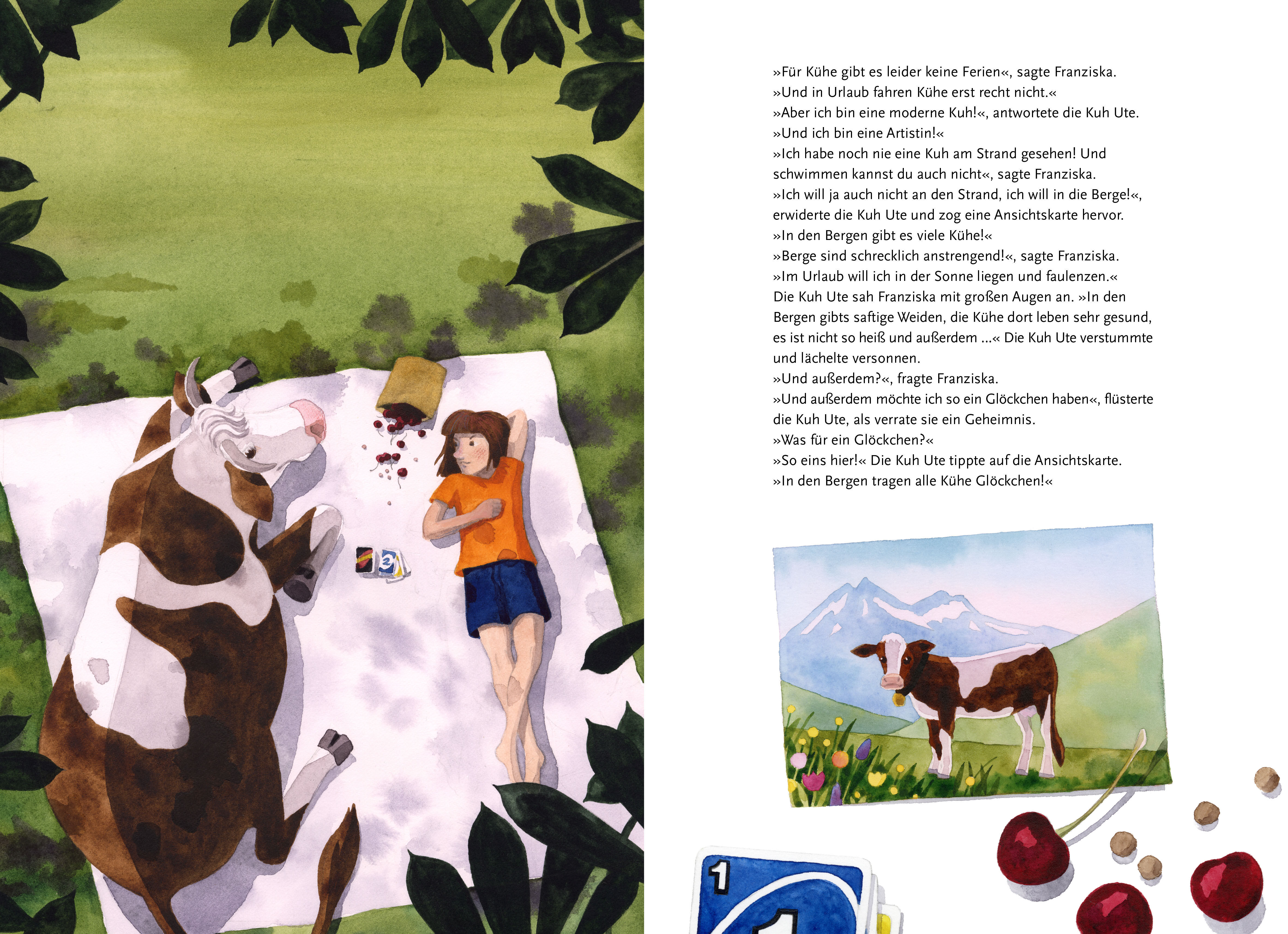 Die Kuh, die allen die Show stiehlt Kühe fahren nicht in den Urlaub. Aber die Kuh Ute ist eine moderne Kuh, und eine Artistin noch dazu. Die Berge, das weiß sie von einer Postkarte, sind das Paradies für Kühe! Saftige Weiden, Panoramablick und hübsche Kuhglock...