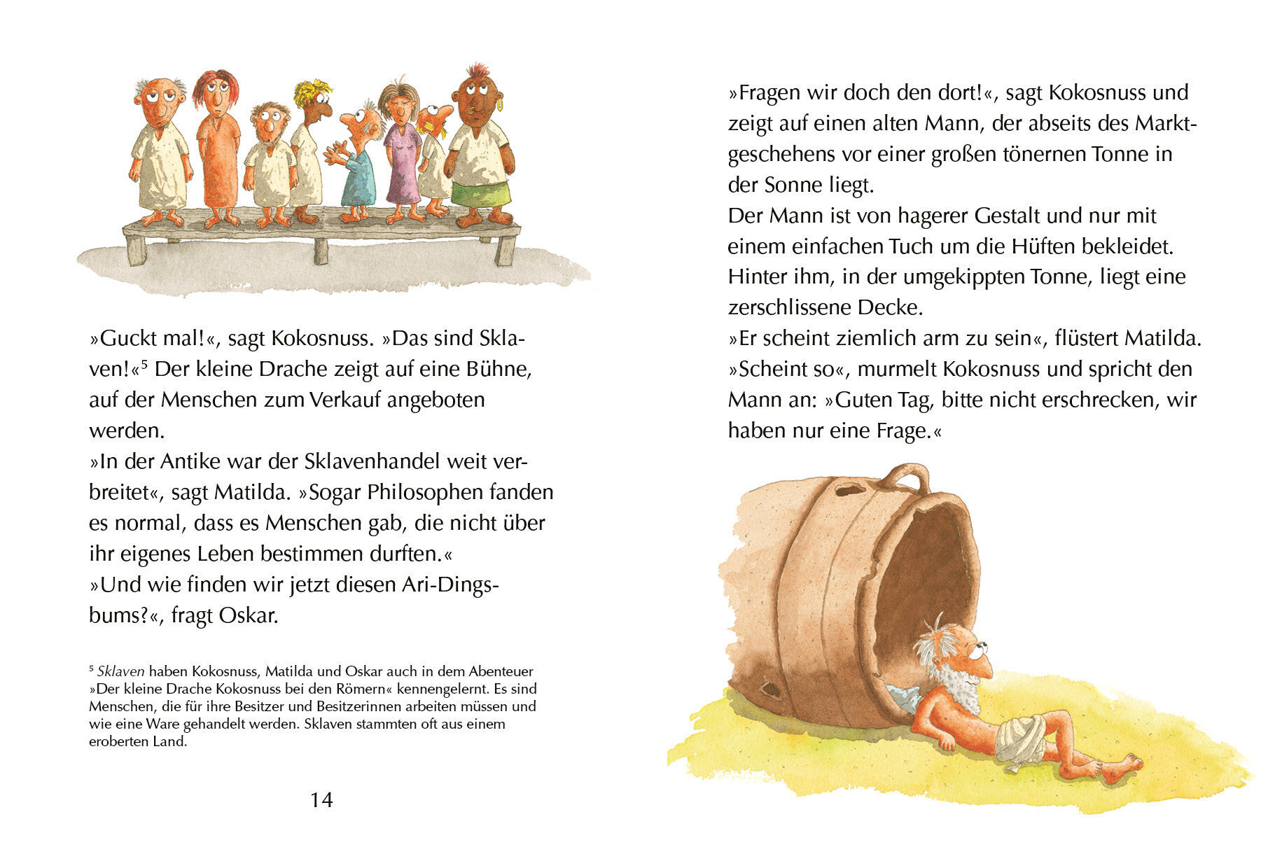 Der kleine Drache Kokosnuss bei den alten Griechen Matilda ist schrecklich aufgeregt, weil sie für die Schule einen Aufsatz über Alexander den Großen schreiben soll. Kokosnuss will unbedingt wissen, ob es das Ungeheuer Hydra wirklich gegeben hat. Und Oskar wür...