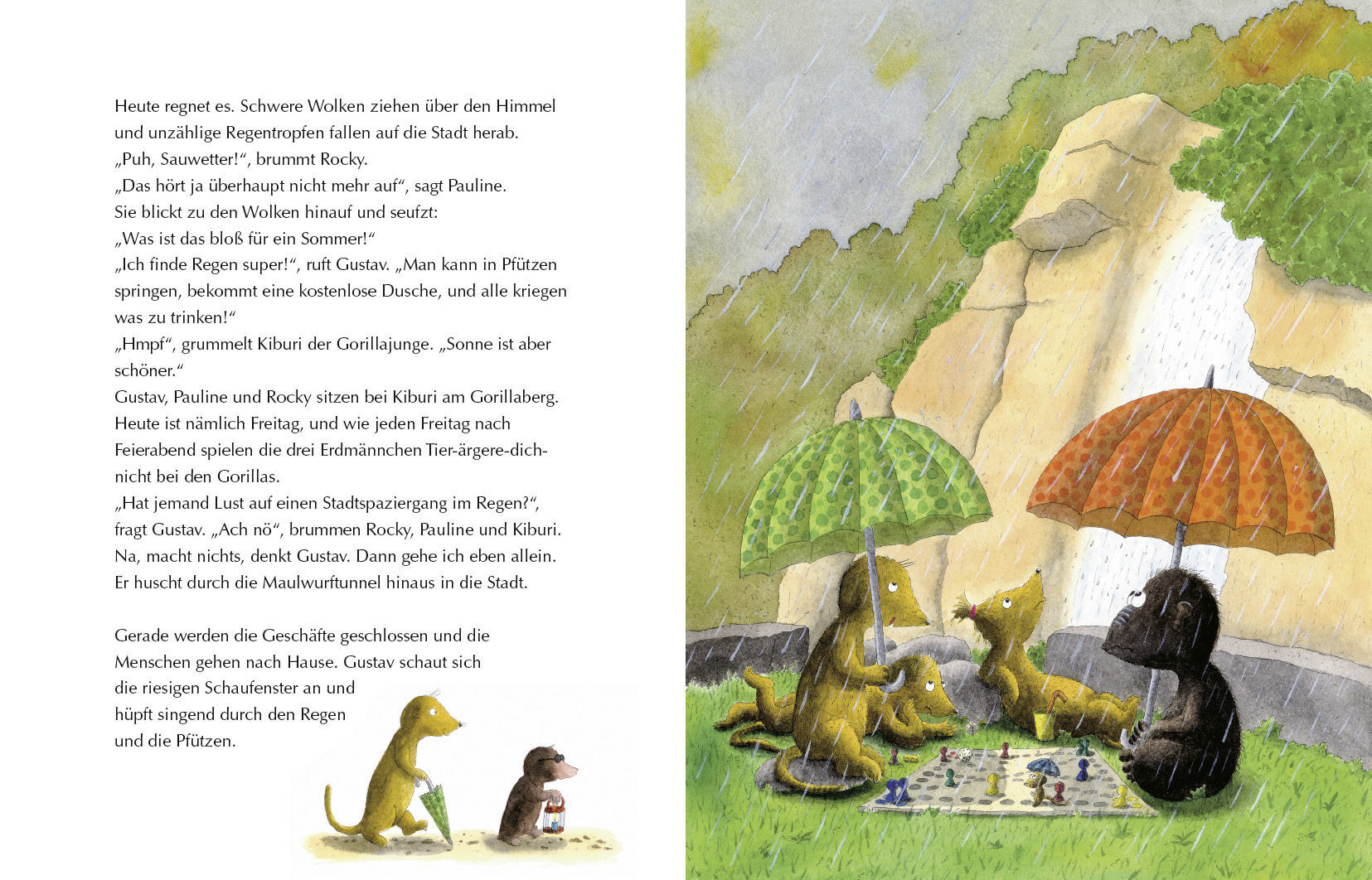 Im Zoo herrscht große Aufregung: Erdmännchen Gustav ist spurlos verschwunden! Seine Freunde machen sich große Sorgen um ihn und hängen in der ganzen Stadt Suchplakate auf. Schließlich tauchen zwei Spatzen auf, die wissen, wo Gustav ist: Er liegt im Krankenhaus...