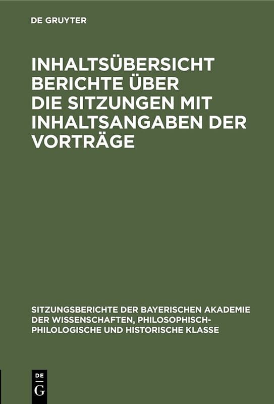 Frontmatter -- Inhaltsübersicht -- Sitzungsberichte der philosophisch-philologischen und der historischen Klasse
