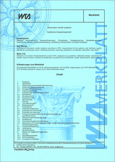 Dieses WTA-Merkblatt befasst sich mit der Mauerwerksinjektion zur nachträglichen Reduzierung kapillar aufsteigender Feuchte. Der Erfolg von WTA-Injektionsverfahren wird im Wesentlichen durch die richtige Planung und die sorgfältige Ausführung mit WTA-zertifizi...