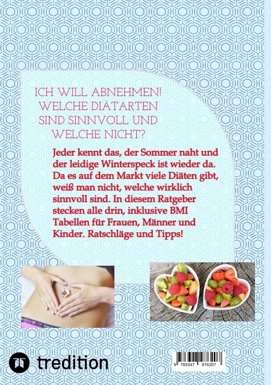 In diesem Buch geht es um das Thema abnehmen! Der Markt hält viele verschiedene Diätarten bereit, doch nicht alle sind sinnvoll und haben Erfolg! Inklusive BMI Tabelle für Frauen, Kinder und Männer sowie Tipps und Ratschläge! Autorentext Ich bin Erfahrene Fami...