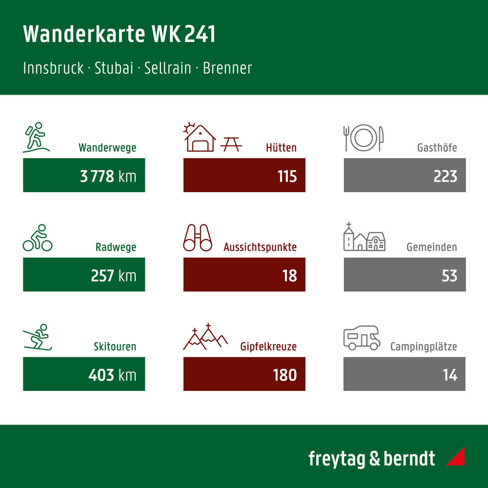 Die Wander-, Rad- und Freizeitkarte Innsbruck ist die ideale Karte für Wanderungen, Radtouren und Ausflüge in der Urlaubsregion Innsbruck - Stubaier Alpen. Die Tuxer Alpen und das Wipptal sind nur einige der vielen Wanderhighlights in der Region. Für Winterspo...