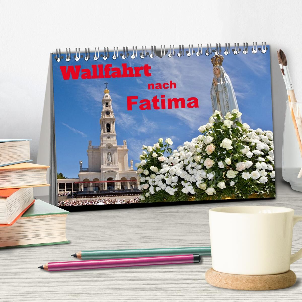 Ein Kalender aus der Serie Religion und Reisen. Fatima, ein bekannter Wallfahrtsort im Centro von Portugal. Drei Hirtenkinder sahen 1907 eine Marienerscheinung. Dieses Ereignis veränderte den Ort in ein modernes religiöses Zentrum . Wir haben hier einen intere...