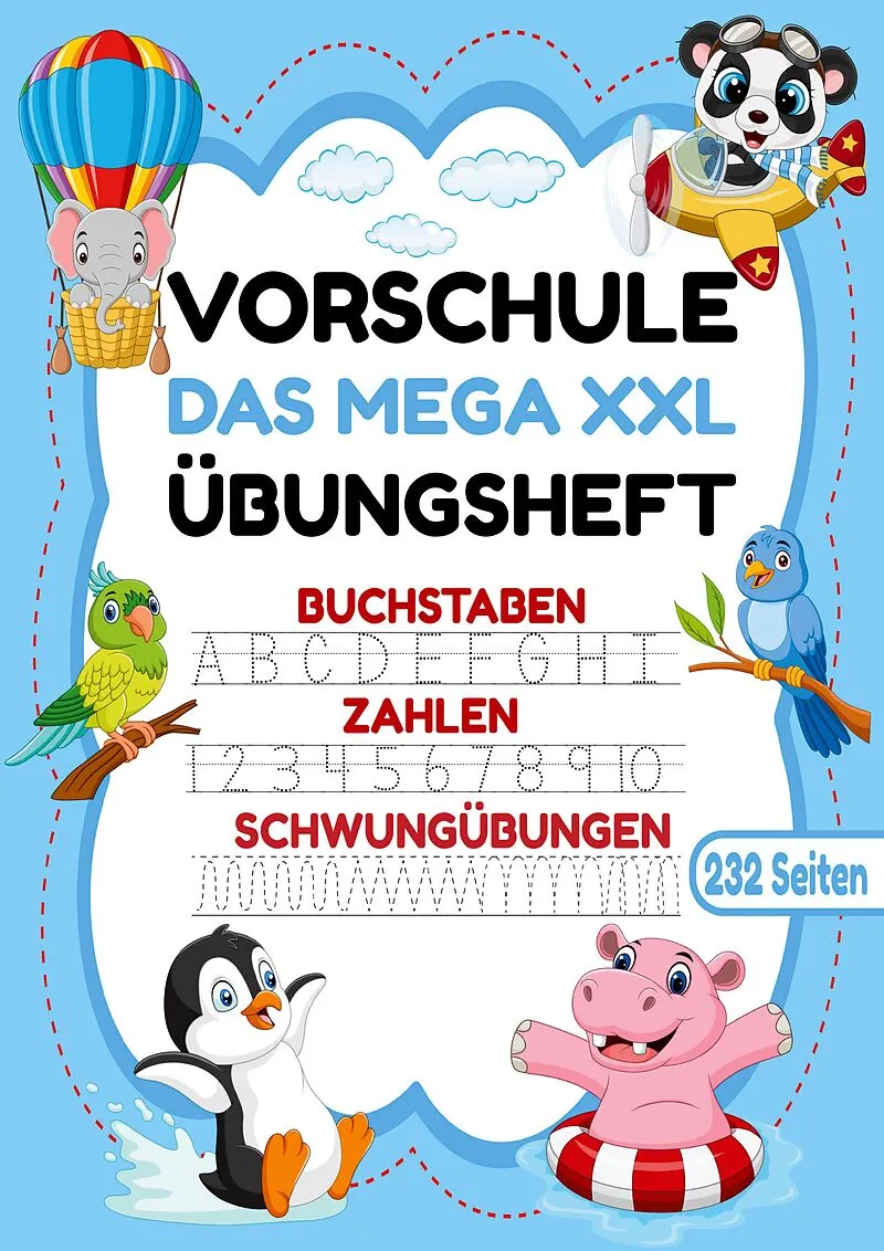 Das MEGA XXL Vorschule Übungsheft Spielerisches Lernen mit süßen Tierfreunden! Dieses liebevoll gestaltete Lernheft macht die Schulvorbereitung zum Erlebnis! Perfekt für Mädchen und Jungen ab 5 Jahren , die Tiere lieben und spielerisch Buchstaben, Zahlen und ...