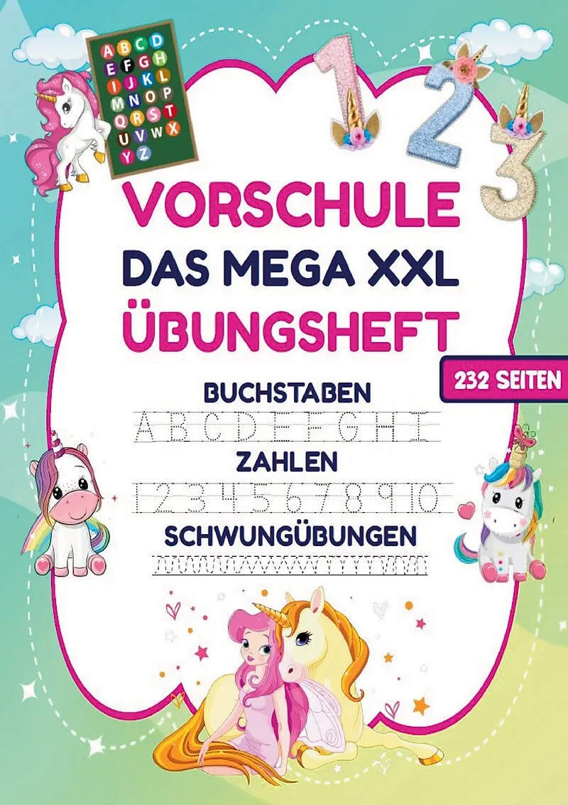 Das MEGA XXL Vorschule Übungsheft für Mädchen Buchstaben, Zahlen & Schwungübungen mit Einhörnern