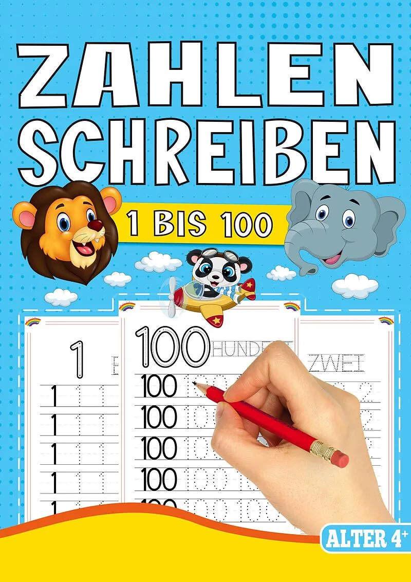 Zahlen schreiben von 1 bis 100 Spielerisches Lernen mit süßen Tieren ! Mit Tieren Zahlen schreiben lernen! Dieses liebevoll gestaltete Vorschule Übungsheft ab 4 Jahren macht das Zahlen schreiben lernen zu einem spannenden Abenteuer. Perfekt für Jungen und Mäd...