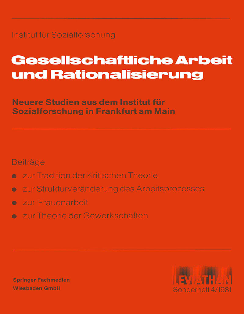 Inhalt Ansichten kritischer Sozialforschung 19301980.- Die Entwicklung von Zeitökonomie und Lohnsystem im deutschen Kapitalismus.- Computereinsatz und Reorganisation von Produktionsprozessen.- Zur Taylorisierung technisch-geistiger Arbeit.- Hausarbeit und tayl...